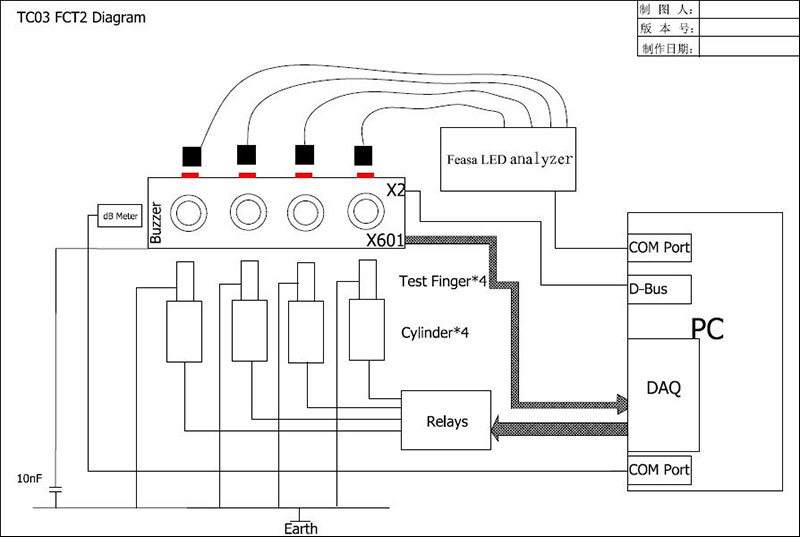 FCT2包括漏電流測(cè)試、D- Bus通信測(cè)試、LED點(diǎn)亮及顏色測(cè)試、蜂鳴器頻率及分貝測(cè)試、繼電器電壓測(cè)試。
