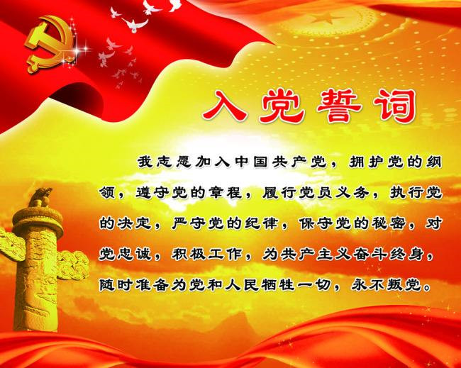 預(yù)備黨員蘇迎清 -------- 這是在黨旗下所立下的誓言,短短80多字,讓我熱血沸騰,充滿理想,感召我努力實(shí)踐,自覺(jué)奉獻(xiàn),將激勵(lì)我不斷進(jìn)取,為黨的事業(yè)奮斗終身。