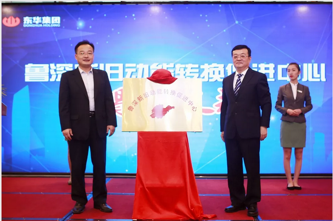 山東省國有資產(chǎn)管理委員會(huì)二級(jí)巡視員王緒超,深圳市東華實(shí)業(yè)(集團(tuán))有限公司黨委書記、董事長王謙共同為“魯深新舊動(dòng)能轉(zhuǎn)換促進(jìn)中心”揭牌并講話。