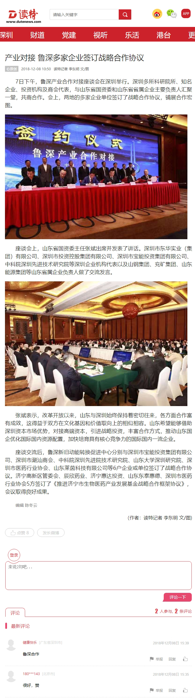 讀特網(wǎng):產(chǎn)業(yè)對接 魯深多家企業(yè)簽訂戰(zhàn)略合作協(xié)議
