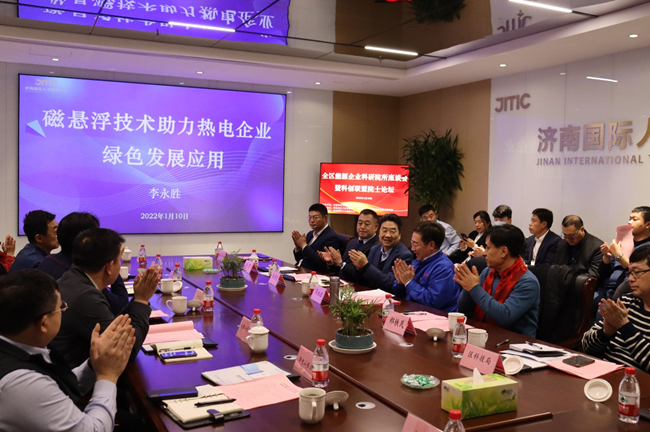 濟南國際人才創(chuàng)新中心入園企業(yè)代表俄羅斯工程院外籍院士、山東天瑞重工有限公司董事長李永勝同志作了《磁懸浮技術(shù)助力熱電企業(yè)綠色發(fā)展應(yīng)用》主題報告,就進一步與歷下區(qū)能源企業(yè)、科研院所加強合作,形成發(fā)展合力進行了探討。