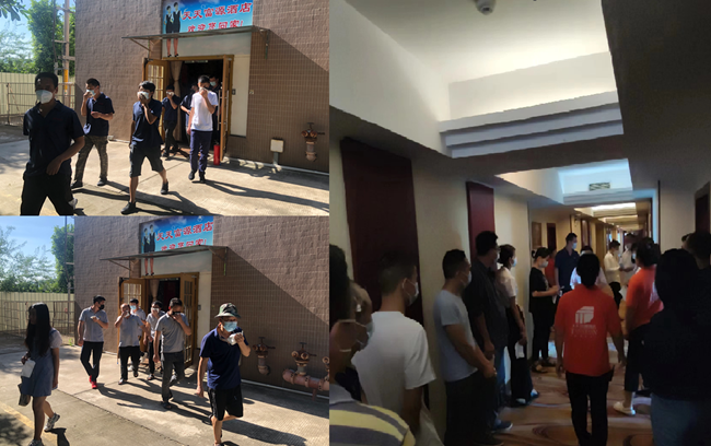 本次活動由應(yīng)急逃生和滅火器實操兩個環(huán)節(jié)構(gòu)成。演練首先模擬天天富源酒店5樓一間客房著火,應(yīng)急組接到報警電話后緊急集合,啟動應(yīng)急預(yù)案并開展救援工作。園區(qū)各單位安全負(fù)責(zé)人迅速到崗,指導(dǎo)本單位員工疏散。大家彎著腰捂住口鼻,按照預(yù)定路線撤離到空曠的安全地帶。各單位安全負(fù)責(zé)人隨即清點人數(shù),并上報撤離情況。整個過程行動迅速,配合默契。