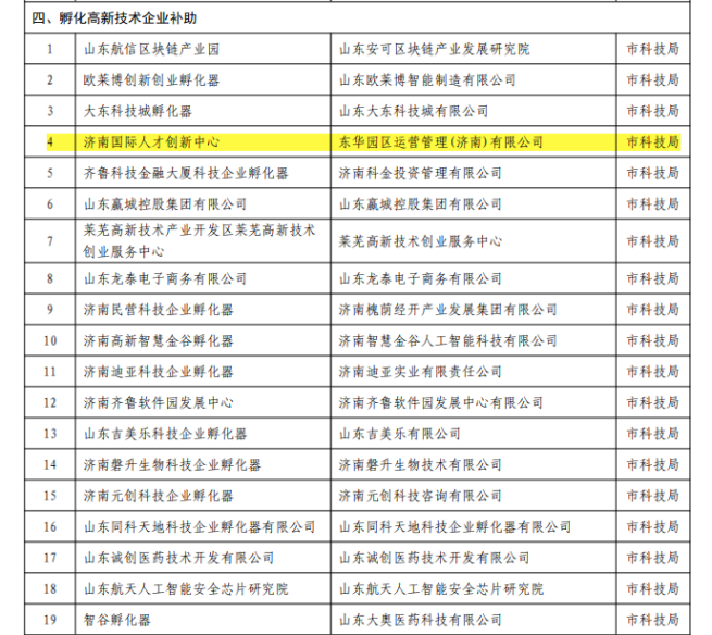 濟南國際人才創(chuàng)新中心獲批孵化高新技術(shù)企業(yè)補助