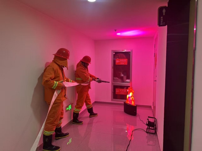 理論培訓(xùn)結(jié)束后,實戰(zhàn)演練隨即展開。上午10時許,隨著警報聲響起,二樓模擬著火點突發(fā)“火情”??傊笓]迅速下達(dá)指令,各應(yīng)急小組聞令即動。滅火分隊迅速穿戴裝備、攜帶器材奔赴“火場”,僅用數(shù)分鐘便成功控制“火勢”,展現(xiàn)出過硬的應(yīng)急處置能力。與此同時,在各樓層指引員的有序引導(dǎo)下,園區(qū)企業(yè)員工沉著冷靜、有序撤離,沿指定疏散路線撤離至安全集合點,整個過程響應(yīng)迅速、井然有序,充分檢驗了應(yīng)急預(yù)案的可行性和團(tuán)隊協(xié)同作戰(zhàn)能力。