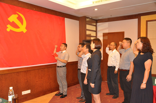 面對(duì)黨旗,公司近30名黨員干部、6名預(yù)備黨員宣讀誓詞:“我志愿加入中國(guó)共產(chǎn)黨,擁護(hù)黨的綱領(lǐng),遵守黨的章程……”。黨員們舉起右拳,在鮮紅的黨旗下莊嚴(yán)宣誓,立下自己對(duì)黨忠誠(chéng)的誓言,表達(dá)了為黨的事業(yè)奮斗終身的決心和愿望。