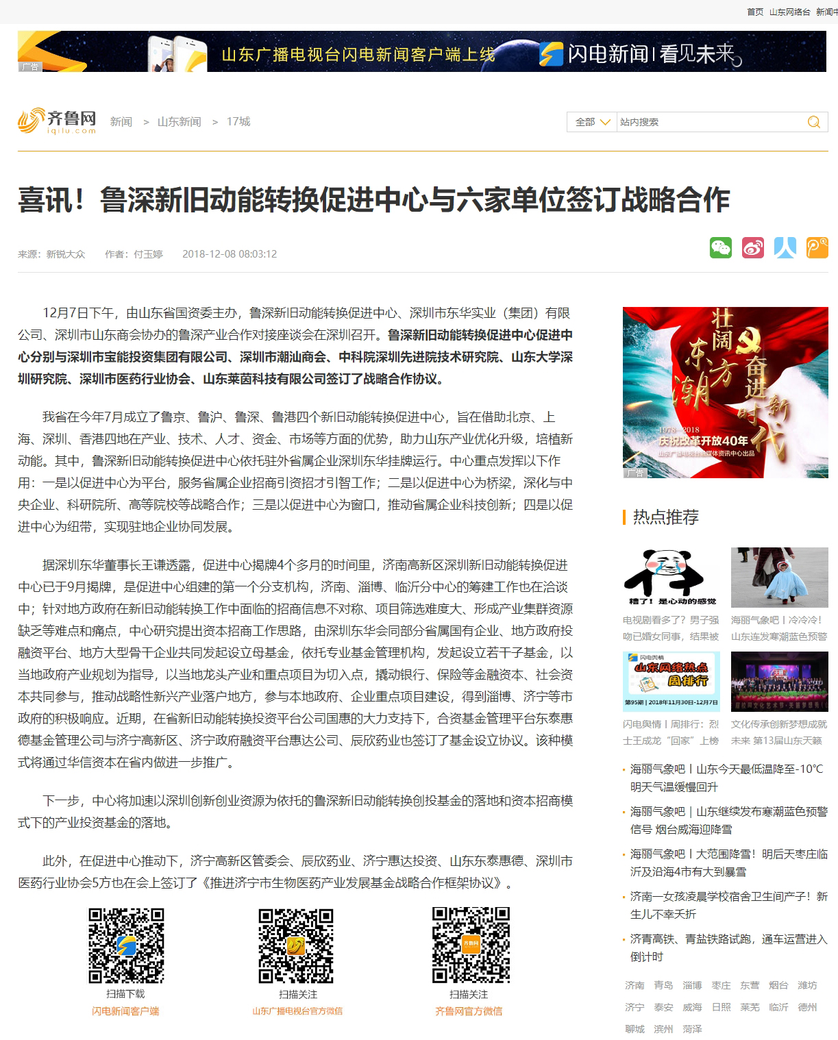 齊魯網(wǎng):喜訊!魯深新舊動(dòng)能轉(zhuǎn)換促進(jìn)中心與六家單位簽訂戰(zhàn)略合作