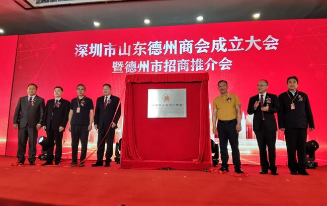 座談會(huì)后,王立新同志與彭小毛部長(zhǎng)一行參加了深圳市山東德州商會(huì)成立大會(huì)暨德州市招商推介會(huì),共同為深圳市山東德州商會(huì)揭牌。