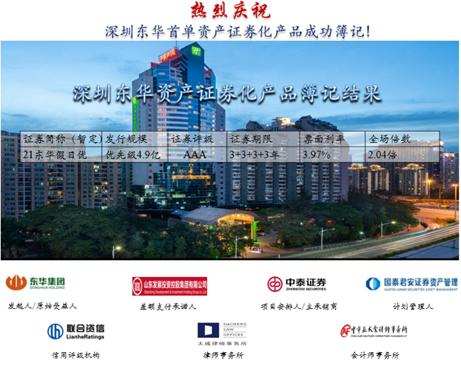 近日,公司首單資產(chǎn)證券化產(chǎn)品CMBS簿記成功,這是山東省內(nèi)率先成功簿記發(fā)行的粵港澳灣區(qū)商業(yè)地產(chǎn)CMBS,也是公司在全國(guó)資本市場(chǎng)的首次公開亮相。