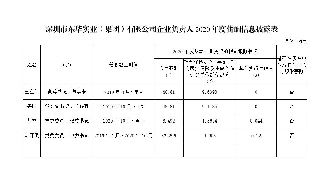 深圳市東華實業(yè)(集團)有限公司企業(yè)負責人2020年度薪酬信息披露表
