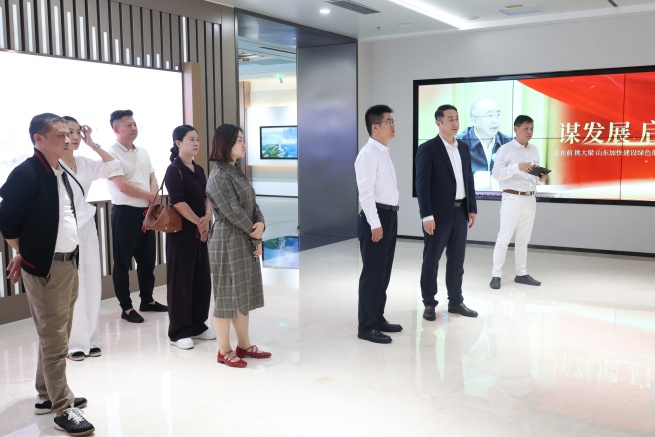 丁雙全一行參觀了山東發(fā)展•魯深高質(zhì)量融合發(fā)展中心,詳細(xì)了解了深圳東華的發(fā)展歷程、產(chǎn)業(yè)布局以及“雙招雙引”工作開展情況,聽取了山東經(jīng)濟(jì)發(fā)展、產(chǎn)業(yè)轉(zhuǎn)型、科技創(chuàng)新和人才培育等方面的介紹。