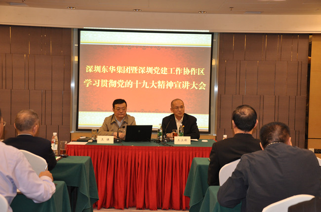 [導讀] 11月23日下午,東華集團暨省管企業(yè)深圳黨建工作綜合協(xié)作區(qū)學習貫徹黨的十九大精神宣講會在集團春華廳隆重召開,省管企業(yè)宣講團成員東華集團公司黨委書記、董事長王謙同志作宣講,集團黨委副書記、總經(jīng)理王立新同志主持會議。