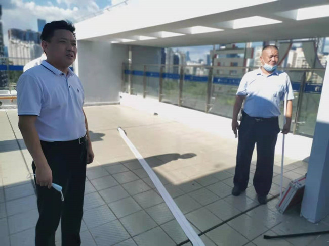 夏天明同志檢查公寓樓頂消防設(shè)施